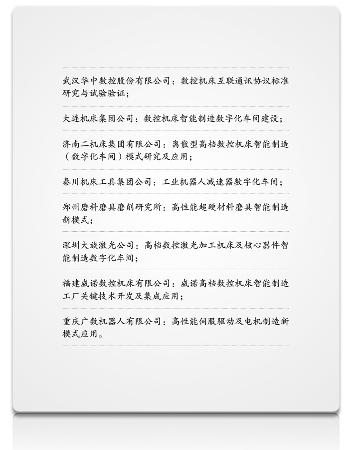 機床行業入選的主要項目有: