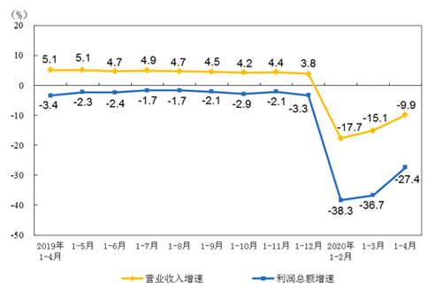 2020年1-4月全國規(guī)上工業(yè)企業(yè)利潤(rùn)下降近3成