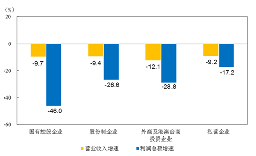 1-4月份,規(guī)模以上工業(yè)企業(yè)中,國有控股企業(yè)實(shí)現(xiàn)利潤(rùn)總額3046.3億元,同比下降46.0%;股份制企業(yè)實(shí)現(xiàn)利潤(rùn)總額9249.0億元,下降26.6%;外商及港澳臺(tái)商投資企業(yè)實(shí)現(xiàn)利潤(rùn)總額3121.3億元,下降28.8%;私營(yíng)企業(yè)實(shí)現(xiàn)利潤(rùn)總額3920.1億元,下降17.2%。