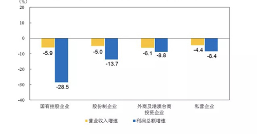 1-6月份,規(guī)模以上工業(yè)企業(yè)中,國有控股企業(yè)實(shí)現(xiàn)利潤總額6614.1億元,同比下降28.5%;股份制企業(yè)實(shí)現(xiàn)利潤總額18247.1億元,下降13.7%;外商及港澳臺(tái)商投資企業(yè)實(shí)現(xiàn)利潤總額6486.4億元,下降8.8%;私營企業(yè)實(shí)現(xiàn)利潤總額7119.8億元,下降8.4%。