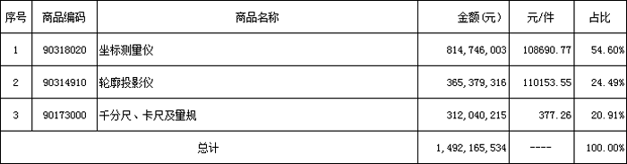 量具出口額(11.69億人民幣)遠大于進口額(3.12億人民幣),量儀出口額(2.74億人民幣)遠小于進口額(11.8億人民幣)),量具出口增長幅度遠大于進口,量儀出口增長幅度遠小于進口。