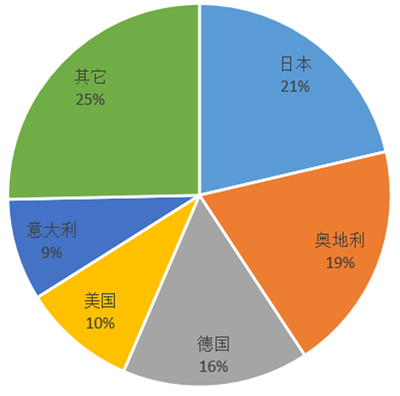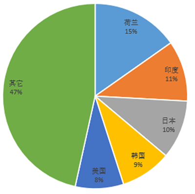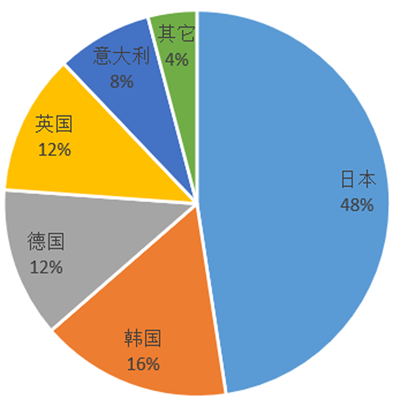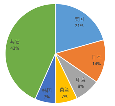 2022上半年,棕剛玉、其他人造剛玉、碳化硅、磨具產品主要進口國家和地區如圖6-9所示。
