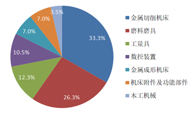 從行業(yè)上市公司的細分行業(yè)分布來看,金屬切削機床行業(yè)居首,占33.3%;磨料磨具行業(yè)其次,占26.3%;工量具行業(yè)第三,占12.3%;數(shù)控裝置行業(yè)第四,占10.5%;金屬成形機床行業(yè)第五,占7%。機床附件及功能部件行業(yè)也占7%。具體行業(yè)分布情況如圖2所示。