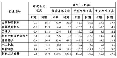表4 各分行業(yè)凈現(xiàn)金流情況表