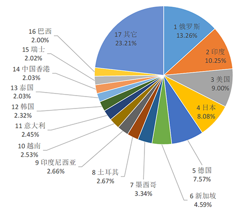 圖6 2023年1-9月其他硬質合金制的金工機械用刀及片(82081019)出口目的地統計