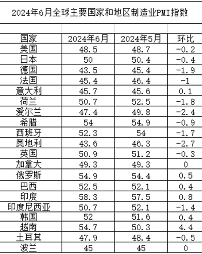 中國物流與采購聯合會76日發布的數據顯示,20246月份全球制造業PMI49.5%,較5月份下降0.3個百分點,這也是連續3個月處在50%以下,連續3個月環比下降。