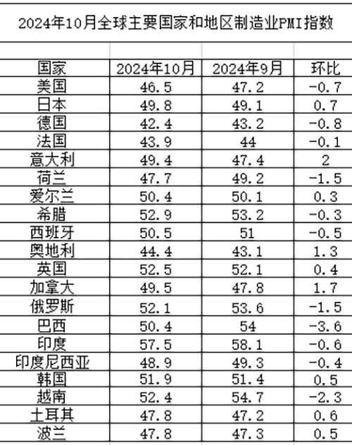 全球經(jīng)濟恢復(fù)弱勢平穩(wěn),2024年10月份PMI為48.8%