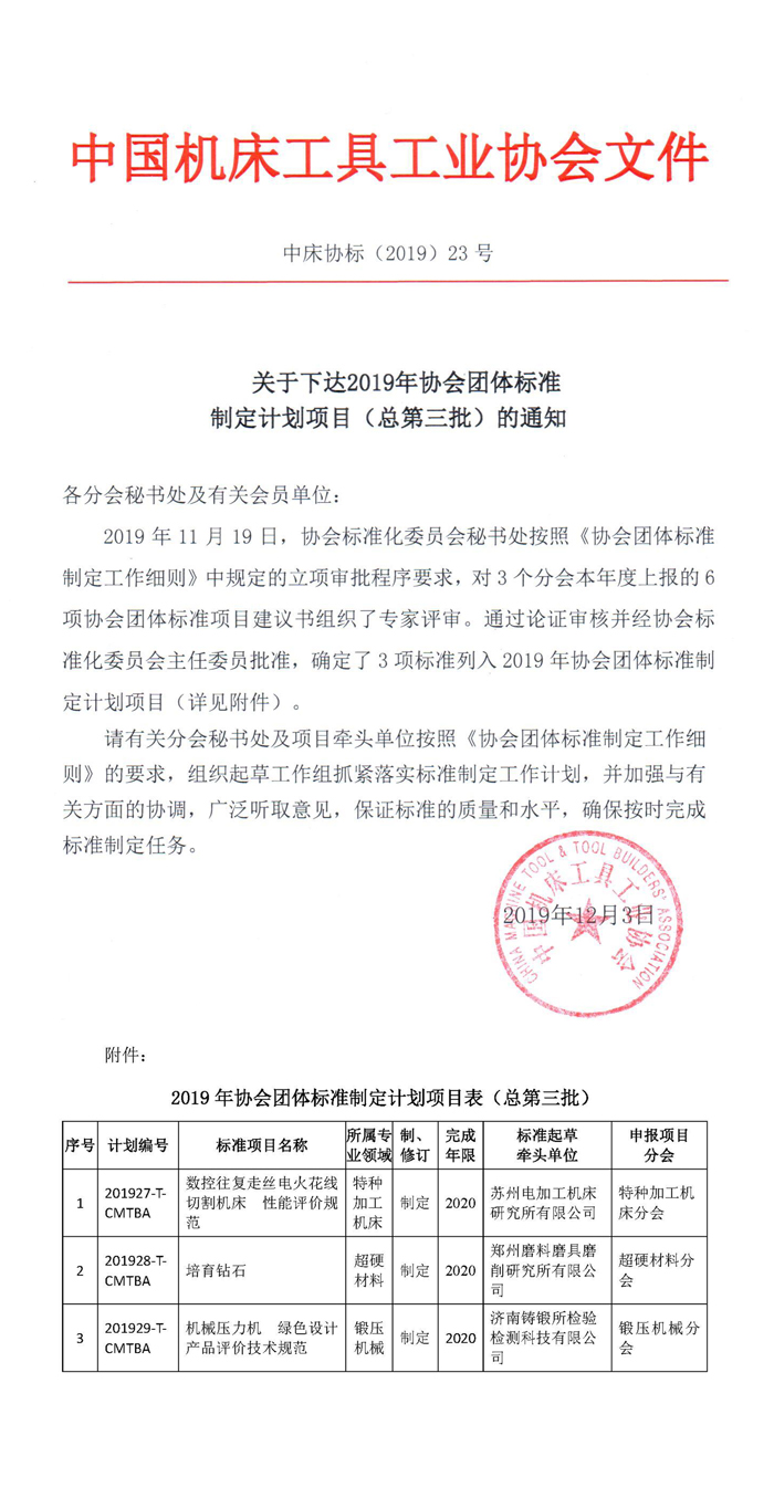 關(guān)于下達(dá)2019年協(xié)會(huì)團(tuán)體標(biāo)準(zhǔn)制定計(jì)劃項(xiàng)目(總第三批)的通知
