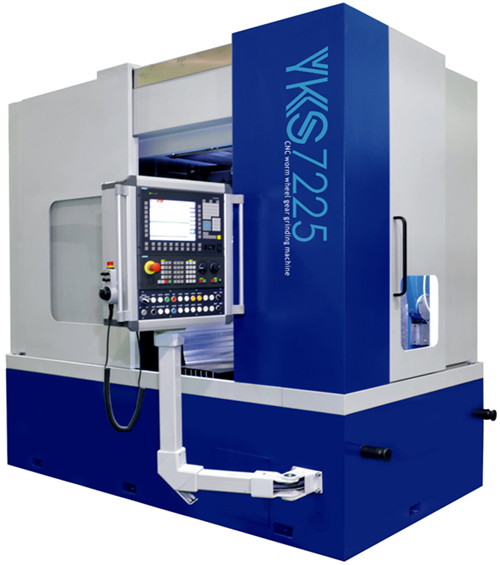YKS7225數控蝸桿砂輪磨齒機采用立式布局、雙工件主軸結構和雙主軸直接驅動技術、滾輪壓力角自動調整技術、多頭蝸桿砂輪磨削及修整技術、齒面扭曲控制磨削技術、齒槽自動對中和余量自動分配技術;配置SIEMENS 840Dsl數控系統,可實現從工件裝夾、對刀、磨削及砂輪修整的全自動控制;可配置自動上下料系統,提高機床加工效率。