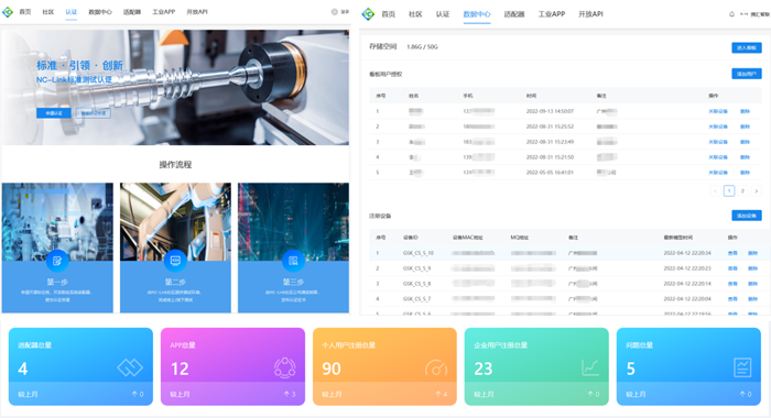 (左上:裝備互聯平臺服務板塊,右上:數據中心服務板塊,下:NC-Link社區注冊連接數量)
