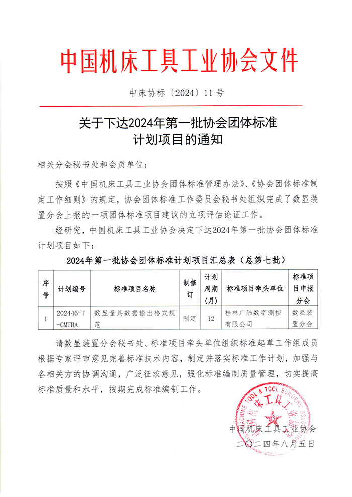 關(guān)于下達(dá)2024年第一批協(xié)會(huì)團(tuán)體標(biāo)準(zhǔn)計(jì)劃項(xiàng)目的通知