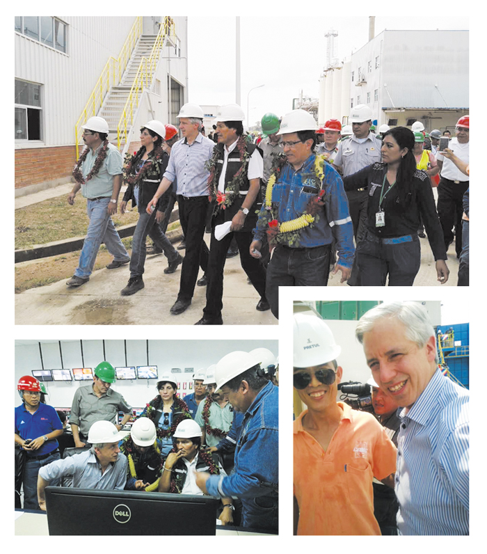 王芳雄說,剛到玻利維亞的第二天,正趕上圣布埃納文圖拉糖廠舉行盛大的慶祝儀式。自己正在安裝調(diào)試機床時,玻利維亞總統(tǒng)帶領(lǐng)的視察團隊已靜靜站在了身后。“看到很多人圍攏到我的工作現(xiàn)場,我當(dāng)時愣住了,以為發(fā)生了什么事……”,后經(jīng)隨行翻譯解釋是總統(tǒng)在視察,緊張的心情才有所放松。我非常高興,表示想與總統(tǒng)先生合影留念。盡管語言不通,但從翻譯人員只言片語的詞匯里聽到了“中國good!”、“星火good!”的贊嘆,并最終實現(xiàn)了和總統(tǒng)先生合影的愿望。那個瞬間,自己真正感受到祖國母親的偉大,感受到了星火公司的親切。