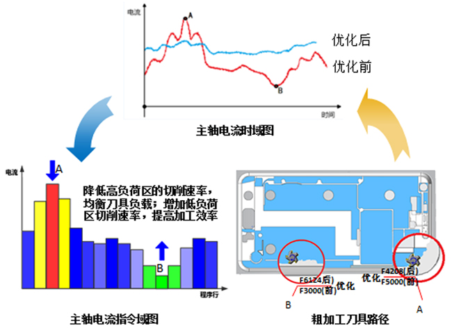 勁勝智能制造車間的每一臺數控設備和機器人都在大數據中心記錄了設備工作過程中的實時大數據。這些數據與加工程序在指令域上實現關聯,構成每一個零件加工的“心電圖”。利用該“心電圖”,能看到每一條加工程序的主軸功率、電流、振動和誤差大小。華中數控的智能優化模塊可以幫助用戶優化加工工藝參數,提高加工效率5-30%以上。