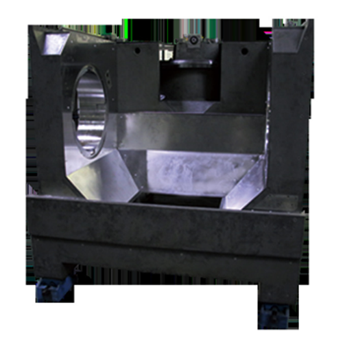 KMC800S系列五軸立式加工中心采用人造理石為床體主要材料。人造理石材料熱膨脹系數僅為鑄鐵的1/20,具有更好的環境適應性,更小的熱變型誤差;人造理石阻尼是鑄鐵的6倍,具有更好的吸收振動的能力,降低切削振動對機床傳動部件的影響;人造理石床身制造工藝采用常溫固化,沒有鑄鐵冷卻不均導致的內應力,是國際上精密機床優選的床身材料。