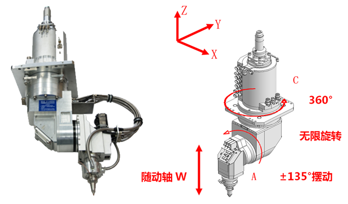 精密的光學計算,制定系統幾何的空間算法,研制360°無線旋轉三維切割頭,自主創新,擁有核心技術,是繼德國Trumpf、意大利Prima、德國LT后,第四家能夠生產360°無線旋轉三維切割頭的廠家,打破了國外技術壟斷。360°無線旋轉三維五軸切割頭如圖6所示。
