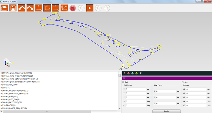 大族自行開發的HANS 3DEDIT在線修改程序軟件,修改程序尺寸更加方便、快捷,換件速度快,提高了生產效率,節約了生產成本。在線修改軟件如圖7所示。