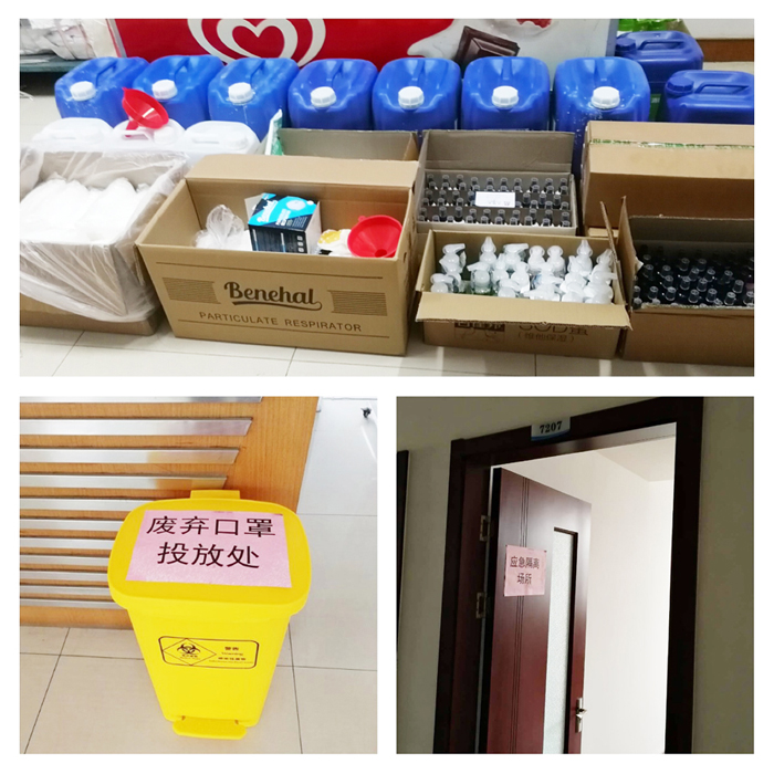 公司購置了消毒水、酒精、洗手液、口罩、一次性手套、體溫測量儀等防疫物資,并設置了廢棄口罩回收點,加強防疫物資儲備及發放管理,確保物資及時到位,安全有效使用。在公司7號樓二樓專門設置符合要求的應急隔離場所。