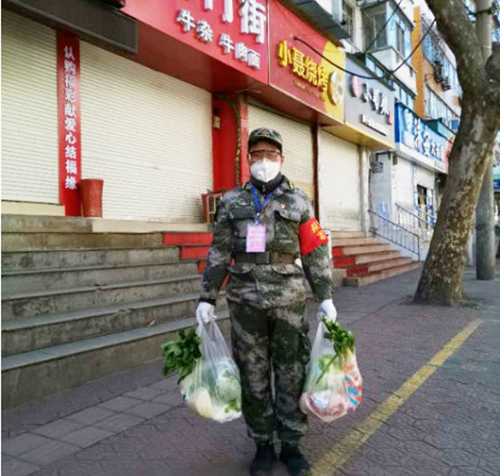 2月17日早上,作為第一批參與到社區抗疫戰線的黨員志愿者,杜建軍來到張灣區漢江路街道辦事處七里社區報到,開始了志愿者工作。杜建軍服從工作安排,積極與社區工作人員協調分工,每天將配送到社區的居民蔬菜進行卸貨、分類存放、搬運到救災帳篷中,再分發到居民手中。同時,他還承擔著社區人員、車輛出入登記工作,每天晚上七點,他還參與社區巡邏工作。