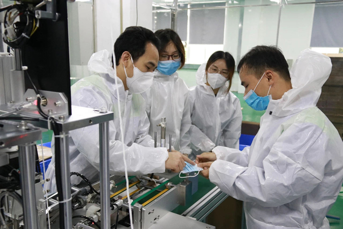 疫情發生以來,口罩成為需求最為迫切的防疫物資,匯專科技集團股份有限公司(以下簡稱“匯專科技”)生產的口罩機核心功能部件超聲焊接系統供不應求。為了盡快提高產能,匯專科技與廣東省機械工程學會副理事長王成勇教授帶領的廣東工業大學團隊深入開展產學研合作,圍繞超聲加工技術及裝備進行緊急協同升級,改進后的超生焊接系統實現了全自動化焊接,效率提高了40%
