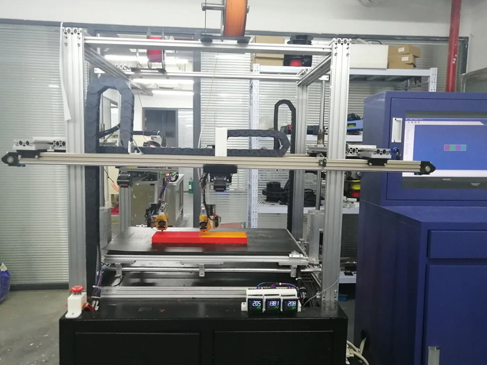 是封閉式,還是敞開式?采用封閉式的設計,一大主因就是出于美觀。對于大型FFF3D打印機床,一項非常重要的考量是操作方便性。如果機身非全封閉,那么可在打印機的固定工作臺上,再設置左右各一個活動工作臺,兩個活動工作臺輪流工作更能提高效率。