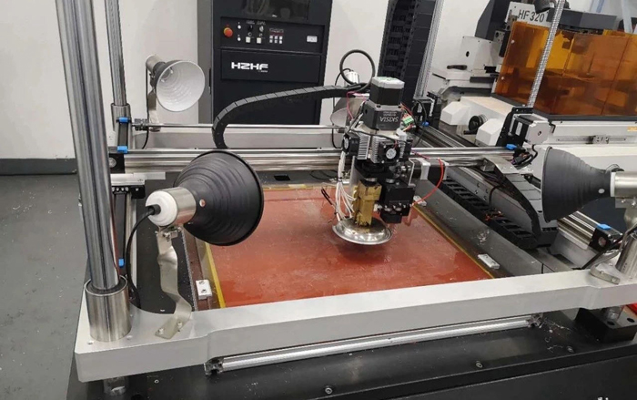 是全室加熱,還是工件保溫?在許多大型FFF3D打印機中,采用風機向成形室鼓送熱風,使打印件能持續保溫,但副作用是成形室內的零件長時間處于較高溫度下工作,容易造成故障、失效。其實,為使打印件保溫,并非必須對成形室進行全室加熱,可以借鑒家庭浴室浴霸取暖的設計,機床四周固定四個定向紅外射燈,紅外燈隨打印進程同步提升,持續加溫打印樣件,簡單實用、效果明顯。