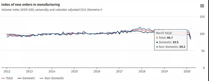 受新冠疫情影響,德國(guó)3月加工制造業(yè)工廠訂單數(shù)量比2月下降15.6%,機(jī)床等訂單數(shù)量較2月縮水幅度加大,達(dá)到22.6%。