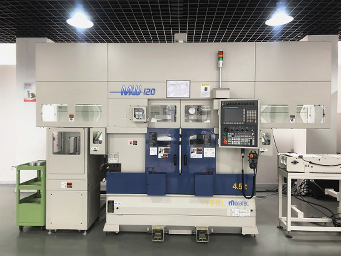 該生產線以高剛性高精度的剛性柱(轉塔基軸)構造為基準,發揮雙主軸車床的優異性能,實現合理化制造生產。采用左右完全獨立型基座,獲取高穩定性、高圓度以及高精表面粗糙度,可實現免維修狀態下的無人化生產。裝備短“C”構造,使刀端卡盤具備高剛性及高抗振性。選用圓筒滑動轉塔機軸方式,實現穩定狀態下的高剛性加工。整體構造設計縮短了加工準備調換時間,可大幅提高生產效率。