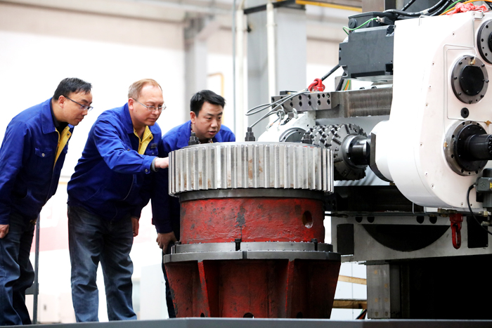 沒有現成經驗,只得慢慢摸索。全閉環系統的很多零件都是進口的,說明書全是英文,袁勇根本看不懂,只有對照圖案自己摸索。那段時間,袁勇泡在了車間,不懂就在網上查,裝了拆、拆了裝,經過半個月夜以繼日的嘗試,最終完成了公司首臺YK51250C×3/6全閉環產品的安裝,確保了產品順利出廠,使公司技術水準和產品質量上了一個新臺階。