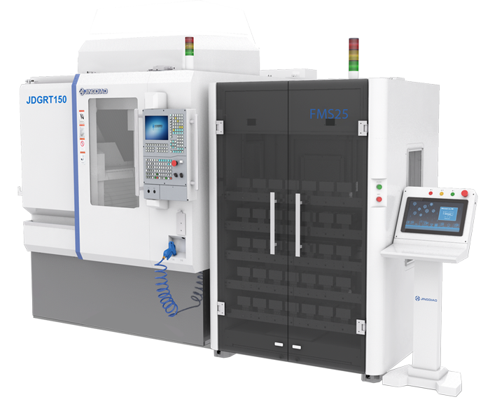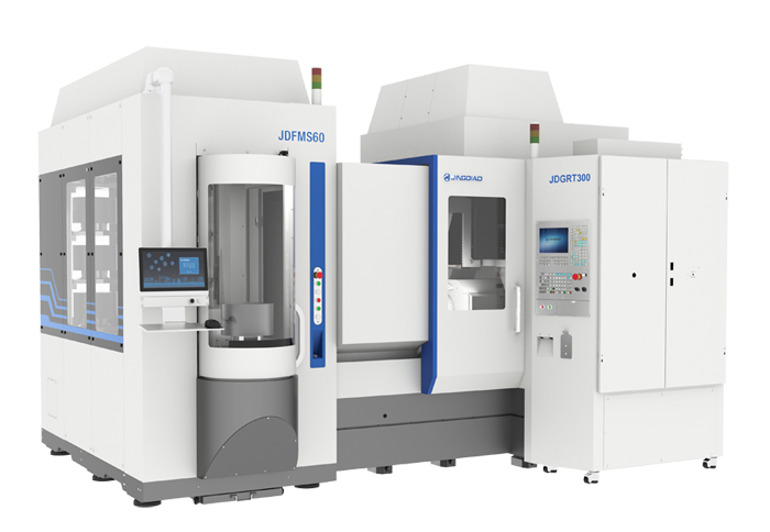 其中,復合型五軸高速加工中心JDGRT300,搭載JDFMS60柔性制造系統,演示了一款減速器零件的五軸雙面銑磨復合加工。加工的樣件所有圓孔的尺寸精度<5μm,圓柱度<3μm;同一面圓孔孔心X、Y位置精度在±3μm以內;兩面圓孔的同軸度保證在10μm以內。
