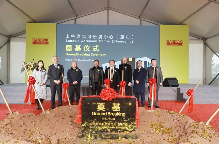 1月25日,山特維克可樂滿在重慶市嘉民空港物流中心舉行了山特維克可樂滿中心奠基儀式,活動由山特維克可樂滿亞洲客戶服務中心經理李民主持。活動以線上線下相結合的方式進行,山特維克可樂滿全球總裁Helen Blomqvist、全球市場副總裁Bjorn Roodzant、全球銷售高級副總裁Eduardo Martin等通過現場連線方式致辭,表達了對建立山特維克可樂滿中心(重慶)的期待。