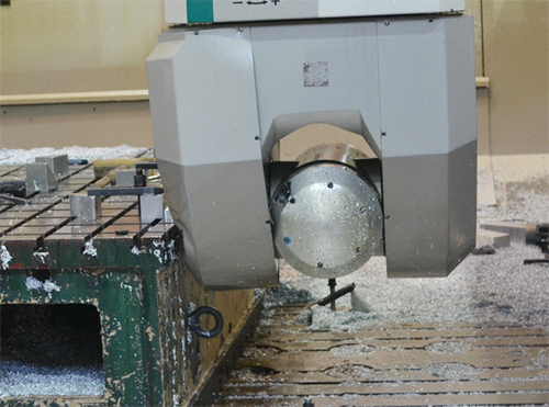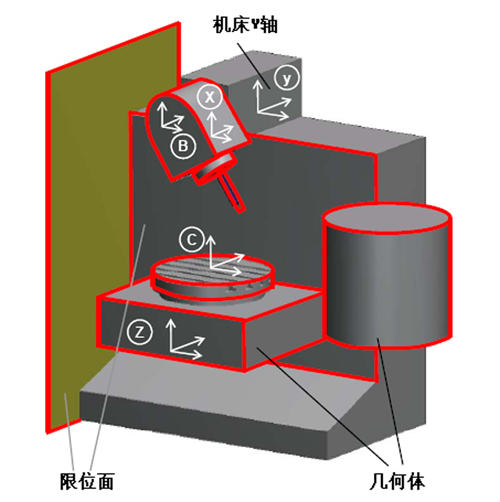 數(shù)控機(jī)床尤其五軸數(shù)控機(jī)床,由于其機(jī)床本體結(jié)構(gòu)、加工路徑、操作、編程、工裝夾具等極為復(fù)雜,一旦出現(xiàn)操作及編程疏忽,如刀具長度、工件原點(diǎn)設(shè)置錯(cuò)誤,機(jī)床部件與毛坯件、工裝、夾具等輔助部件發(fā)生運(yùn)動(dòng)干涉(見圖1)等,都極易造成數(shù)控機(jī)床意外碰撞,輕則刀具破損,重則主軸、銑頭、工件損壞,機(jī)床精度喪失,長時(shí)間故障停機(jī)等,給企業(yè)造成重大經(jīng)濟(jì)損失,嚴(yán)重影響企業(yè)科研生產(chǎn)。