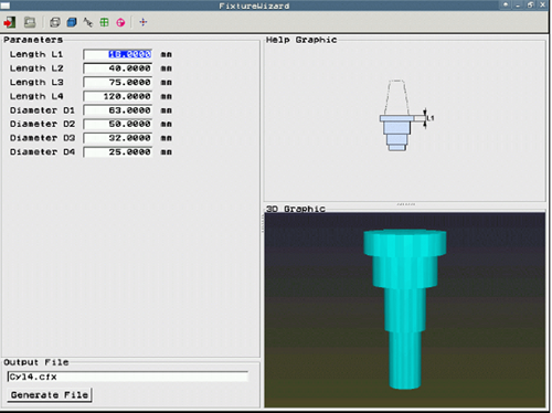 關(guān)于刀具參數(shù),如刀長、直徑等,數(shù)控系統(tǒng)可以從刀具表中獲得。但刀柄的形狀則各不相同,為了實(shí)現(xiàn)刀柄監(jiān)控,還必須對(duì)刀柄的形狀進(jìn)行描述定義,如圖6所示,設(shè)定方法與夾具設(shè)置方法類似。