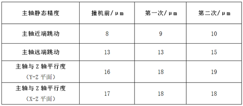 表2 主軸靜態(tài)精度