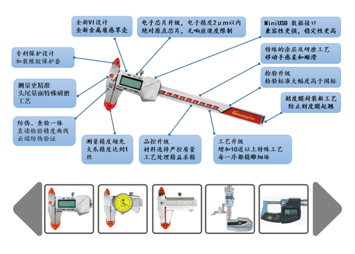 廣陸公司深耕于“量具量儀”行業(yè)30余年,產(chǎn)品從創(chuàng)業(yè)初期的一把“電子數(shù)顯卡尺”,到目前已覆蓋到全系列高精度工業(yè)尺寸測(cè)量產(chǎn)品及測(cè)量解決方案。產(chǎn)品主要應(yīng)用于基礎(chǔ)制造業(yè)、航空航天、鐵路等領(lǐng)域。其中主導(dǎo)產(chǎn)品電子數(shù)顯量具,屬于關(guān)鍵補(bǔ)短板領(lǐng)域及“工業(yè)四基發(fā)展目錄”中的產(chǎn)業(yè)技術(shù)基礎(chǔ)設(shè)備。