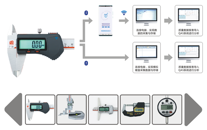 利用帶藍(lán)牙技術(shù)的工業(yè)測(cè)量產(chǎn)品,通過移動(dòng)端APP或PC端應(yīng)用軟件、WIFI網(wǎng)絡(luò)、云存儲(chǔ)、云計(jì)算和大數(shù)據(jù)分析等技術(shù),實(shí)現(xiàn)工業(yè)產(chǎn)品質(zhì)量數(shù)據(jù)的采集、傳輸、存儲(chǔ)和應(yīng)用等功能,實(shí)現(xiàn)質(zhì)量數(shù)據(jù)的數(shù)字化管理和價(jià)值創(chuàng)新。徹底告別手動(dòng)質(zhì)量報(bào)告時(shí)代的低效率與高成本;更便捷的數(shù)據(jù)采集與應(yīng)用功能,高效實(shí)現(xiàn)質(zhì)量大數(shù)據(jù)計(jì)算與價(jià)值賦能;更清晰、透明和可追溯的質(zhì)量管理模式,創(chuàng)新傳統(tǒng)工業(yè)質(zhì)量管理流程。