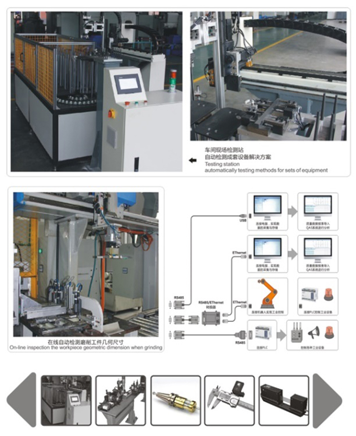 檢測(cè)系統(tǒng)解決方案是利用公司自主研發(fā)的各種檢測(cè)量儀及系統(tǒng),根據(jù)不同的生產(chǎn)環(huán)境,針對(duì)不同的產(chǎn)品提供全自動(dòng)信息化檢測(cè)服務(wù),應(yīng)用無線傳輸技術(shù)和物聯(lián)網(wǎng)技術(shù)集成數(shù)據(jù)分析系統(tǒng),形成完整、高效、統(tǒng)一的數(shù)字化智能制造檢測(cè)系統(tǒng)解決方案。產(chǎn)品應(yīng)用領(lǐng)域包括:刀柄跳動(dòng)測(cè)量、自動(dòng)化生產(chǎn)線工件測(cè)量、醫(yī)學(xué)管件測(cè)量、軸類或膠輥跳動(dòng)測(cè)量、管材測(cè)量、電線電纜在線測(cè)量、刀具測(cè)量、漆包線在線測(cè)量等。