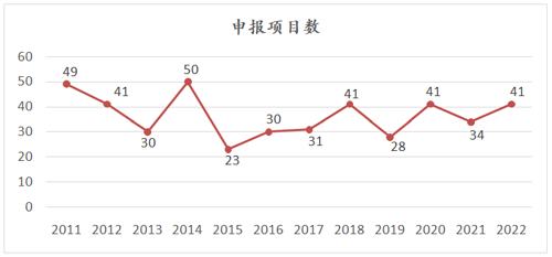 表1 2011-2022年機械工業(yè)科學(xué)技術(shù)獎(機床組)項目申報數(shù)