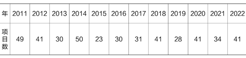 2011年至2022年申報機械工業(yè)科學(xué)技術(shù)獎(機床工具專業(yè))項目數(shù)量情況見表1。