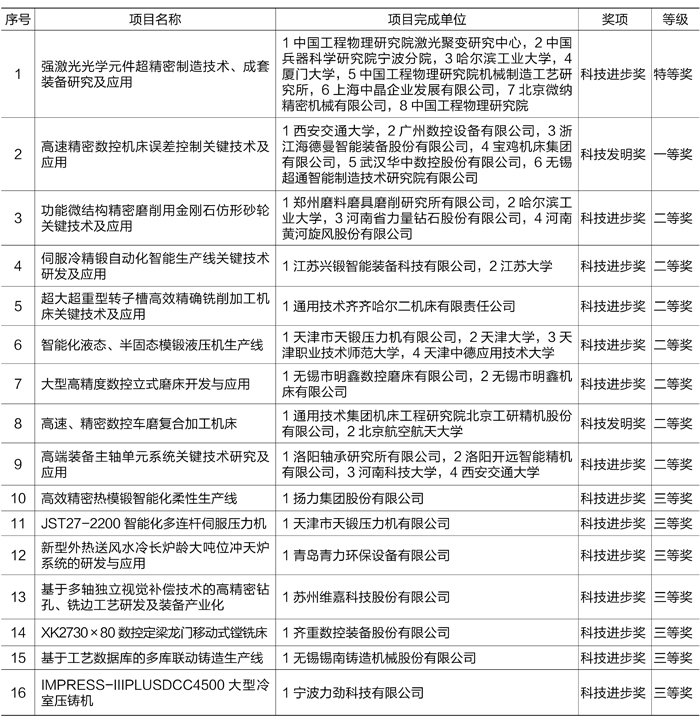 表2 2022年機械工業(yè)科學(xué)技術(shù)獎(機床工具專業(yè))獲獎項目