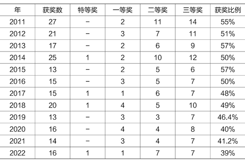 表3 2011-2022年機床工具專業(yè)歷年獲獎情況