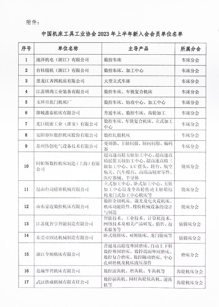 近幾年,隨著協會不斷強化社會組織職能,各分會和工作委員會加強組織建設,努力為行業企業提供服務,吸引了越來越多的機床工具企業積極參加協會組織的各項活動,進而加入協會組織。本次入會的單位是2023年上半年正式批準的(截至2023年6月30日)。