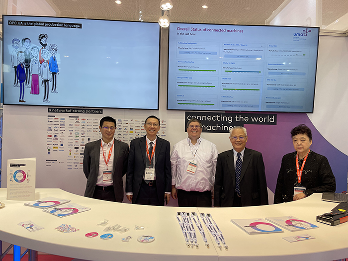 2024910日上午,協會執行副理事長王黎明、副秘書長穆東輝、國際部主任張菁、行業發展部魯春朋一同前往Umati展臺交流。Brooths博士講解了Umati本次參展的主題,并親自演示NC-Link連接的4臺機床,表示希望加快推進合作,并就下一步工作計劃進行了溝通。