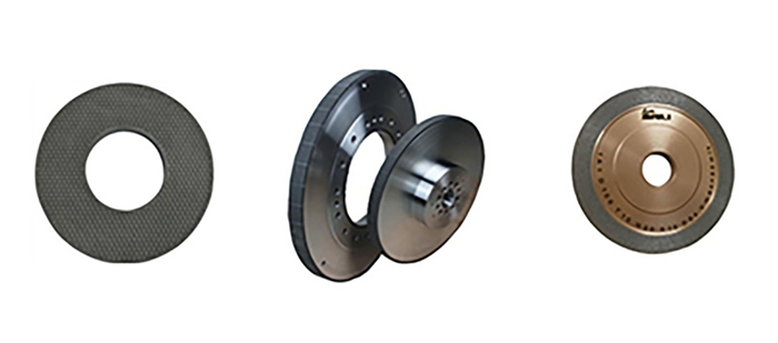 北京榮鋒精密工具有限公司重點(diǎn)推出新型陶瓷結(jié)合劑立方氮化硼研磨盤(見圖19),主要應(yīng)用于汽車零部件(粉末冶金鏈輪、定子、轉(zhuǎn)子)、空調(diào)壓縮機(jī)零部件(滑片、隔板)、軸承(套圈、滾子)、陶瓷(陶瓷閥芯、IT陶瓷基板、陶瓷密封件)、液壓件(定子、轉(zhuǎn)子、側(cè)板、配油盤)、硬質(zhì)合金(刀片、墊片)等磨削,具有磨削效率高、磨削精度好、使用壽命長(zhǎng)等特點(diǎn)。其技術(shù)創(chuàng)新點(diǎn)在于,解決了磨不銹鋼粘盤的問題,避免了磨削過程中因粘盤產(chǎn)生的劃傷、雙金屬工件(銅、鋼)兼容混磨以及磨粉末冶金隔板粗糙度達(dá)Rz1.0μm的難題。