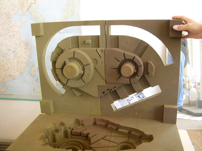 在模具開發前期,由于材料收縮、變形、成型工藝合理性等情況的不可預見性,模具開發往往需要幾次的尺寸調整,增加了模具的開發成本,生產周期很難確定。采用3D打印技術將模具生產的蠟模、砂型等打印出來,先進行成型性試驗,通過試驗確定最佳的模具尺寸、反變形量、合理成型工藝等,這種方式既保證了前期小批零件的供給,又大大降低模具開發成本和縮短模具開發周期。模具開發時間將控制在30個工作日內,首批零件20天內提供,大批量在45個工作日內提供。本體為變形和成型工藝無法預見的典型案例,本體SLS打印蠟模和硅溶膠精密鑄件毛坯如下圖所示。