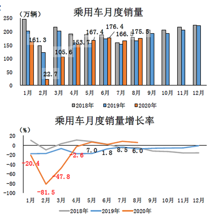 1-8月,汽車產銷1443.2萬輛和1455.1萬輛,同比分別下降9.6%和9.7%,降幅與1-7月相比,分別收窄2.2和3.0個百分點。