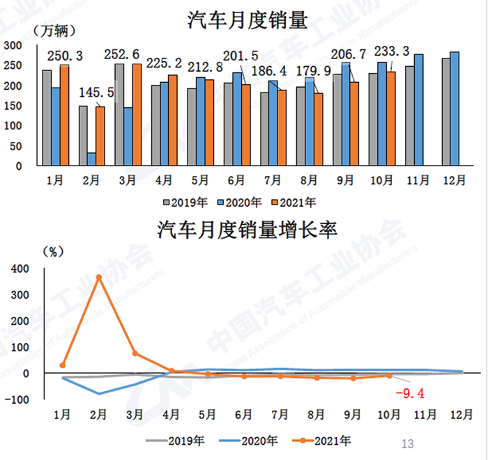 中國汽車工業協會11月10日信息發布會消息顯示,2021年10月,汽車產銷環比繼續增長,同比降幅較上月有所收窄。10月芯片供給情況較9月略有緩解,盡管國慶長假有效工作日相對減少,但市場需求依然保持增長,新能源汽車增速更為明顯。