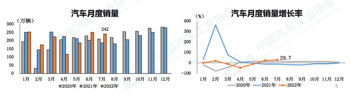 數(shù)據(jù)顯示,7月,汽車產(chǎn)銷分別達(dá)到245.5萬輛和242萬輛,環(huán)比下降1.8%和3.3%,同比增長(zhǎng)31.5%和29.7%,增速均高于上月。
