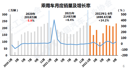 1-9月,乘用車產(chǎn)銷分別完成1720.6萬輛和1698.6萬輛,同比增長17.2%和14.2%,增速較1-8月均擴大2.5個百分點。