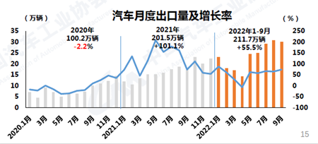 1-9月,汽車企業(yè)出口211.7萬輛,同比增長55. 5%。
