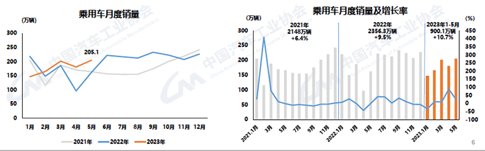 5月,生態環境部等五部門聯合發布了《關于實施汽車國六排放標準有關事宜的公告》,有助于市場穩定。“五一”小長假期間,多地紛紛推出購車促銷措施,舉辦汽車消費節、汽車嘉年華等營銷活動,助力市場需求溫和回暖,較4月有所回升。加之上年同期仍處于疫情影響較大的階段,基數較低。